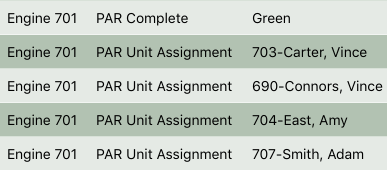 Crew unit assignments and PAR results are saved to the incident log automatically, including a timestamp. Now you'll have a complete and accurate record for safety and post incident analysis reports.
