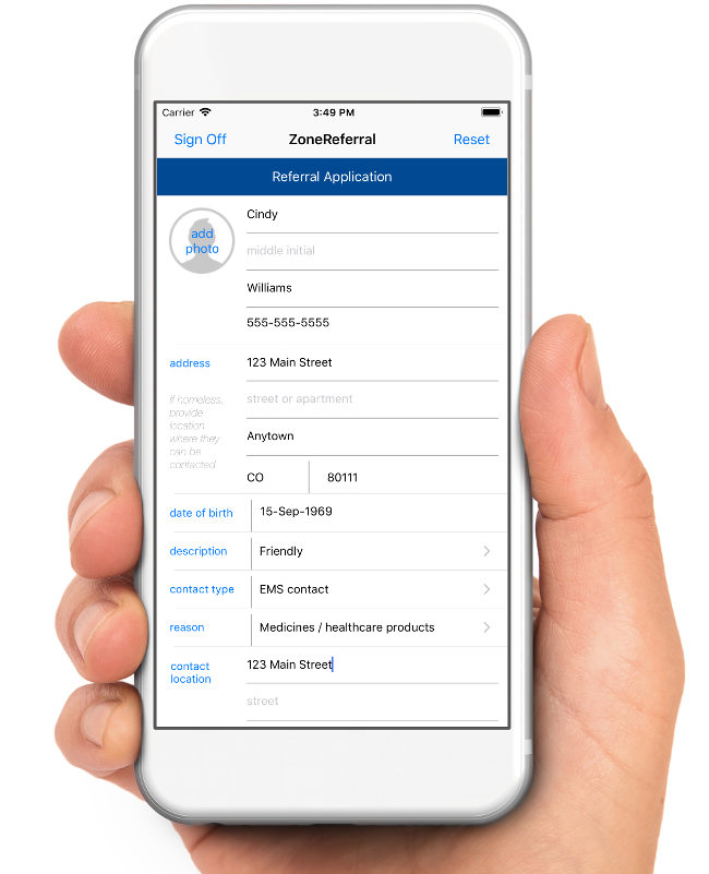 It's easy on a whole new level. Field staff, such as EMS personnel or agency partners, use ZoneReferral™ on an iPhone or iPad to quickly enter referral application details and client needs. They can also attach pictures and a signed release agreement for your coorperative.