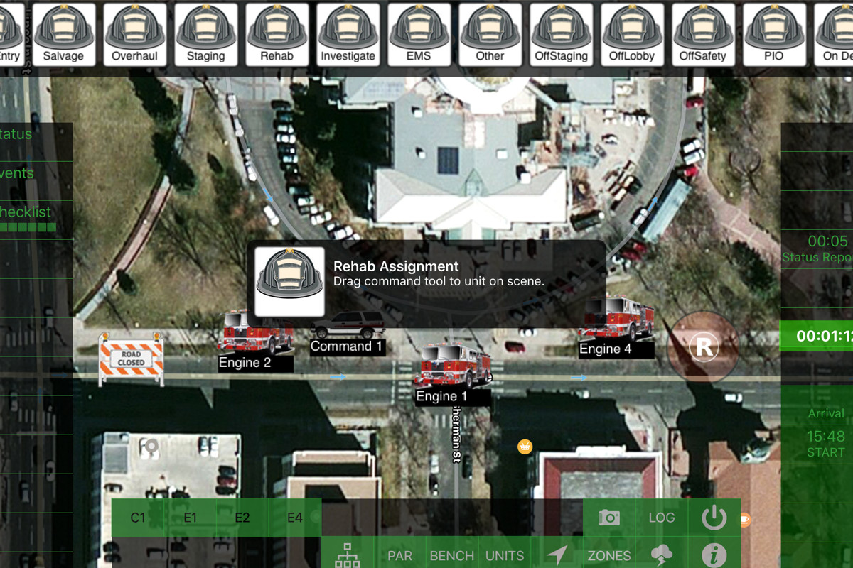 Our incident templates have been skillfully designed to include common tasks. Just drag the assignment tool from the ICD command bar to the unit on scene. ZoneCommand automatically assigns the start time and timestamps the log for you. The unit's designation even updates automatically on the Command Dashboard for instant status assessment.