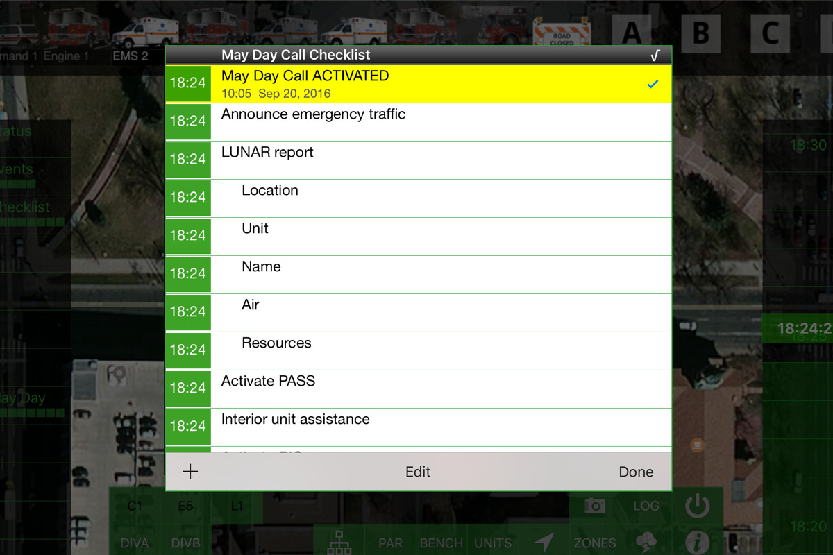 Changes in status happen...Whether it's a Victim Found, May Day Call, or Additional alarm, checklists are vital to command. With ZoneCommand, you're always just a tap away when you need a checklist. What's more, checklists automatically vary by incident type, so your checkslists are always relevant.