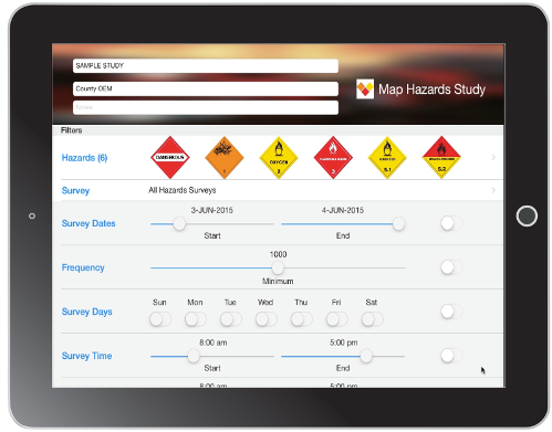 ZoneStudy includes a robust collection of ready-to-use filters. With just a few taps, you can narrow a study by hazard class and select days of the week. What's more, it only takes a finger swipe to set a date range, frequency, or start/end times.